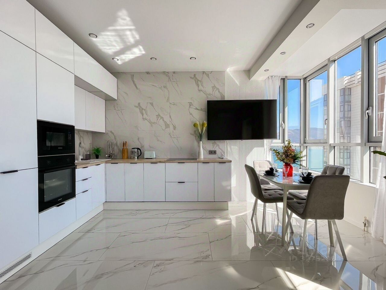 Главный акцент — панорама, которая заставляет сердце биться чаще: Большие окна вашей квартиры — это живая, постоянно меняющаяся картина. Ваш личный фронт-ряд на главное шоу Ялты — бескрайнее Чёрное море. Утренняя гладь, искрящиеся на солнце дорожки, закаты, окрашивающие горизонт в багрянец... Этот вид невозможно купить, им можно только владеть.