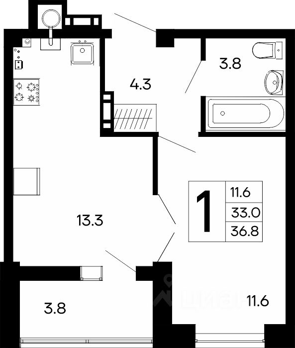 Общая площадь36,8 м2