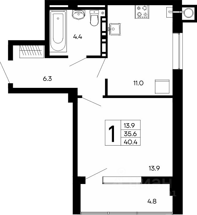 Общая площадь40,4 м2