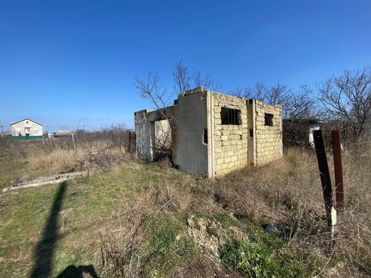 Участок чистый, сухой, ровный, есть ленточный фундамент и небольшой недостроенный дом.