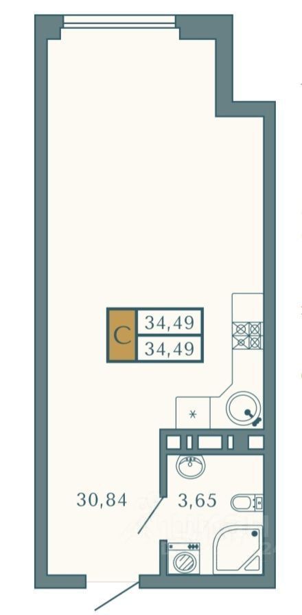 Общая площадь34 м2
