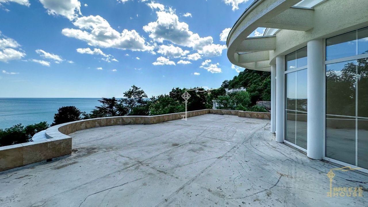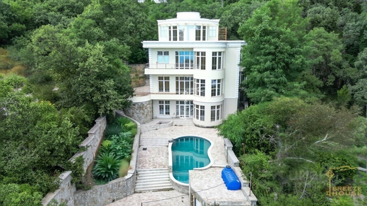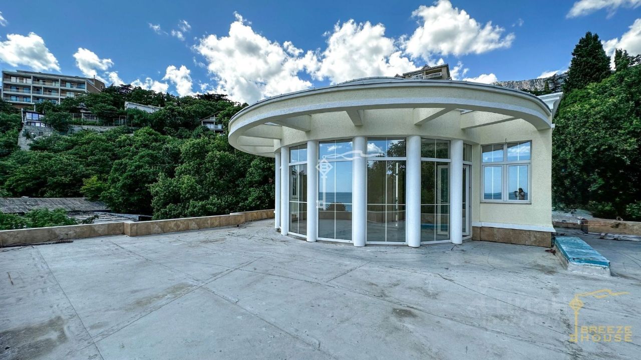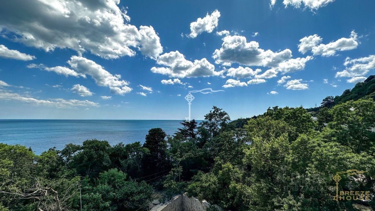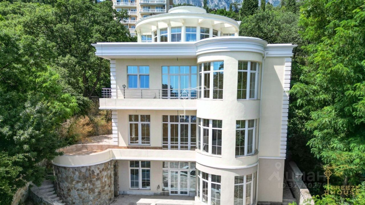 Четырёхэтажная резиденция общей площадью 680 м² расположена на участке 8 соток ИЖС в прибрежной части Алупки, всего в 50 метрах от моря с шикарными видами на Чёрное море и силуэт горы Ай-Петри.