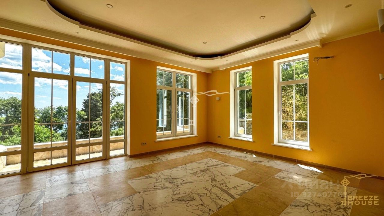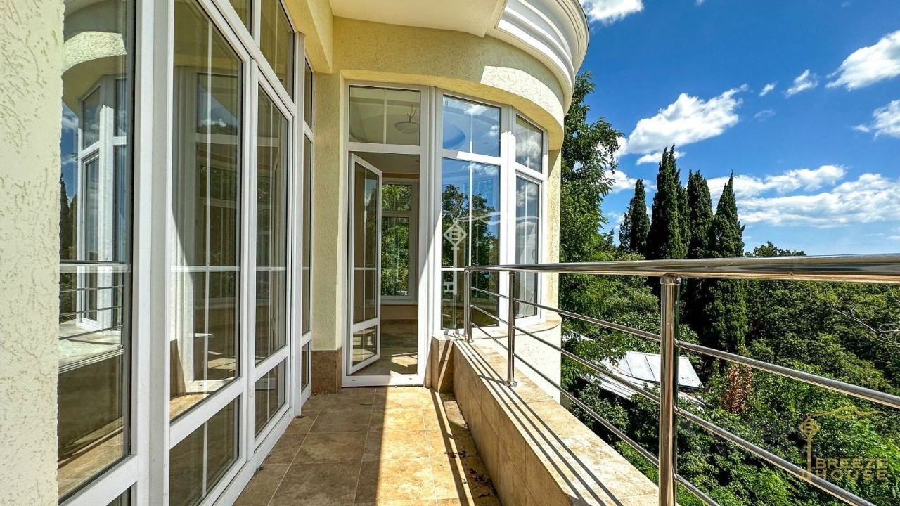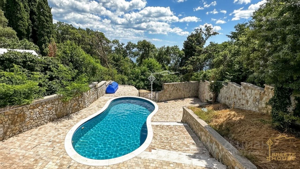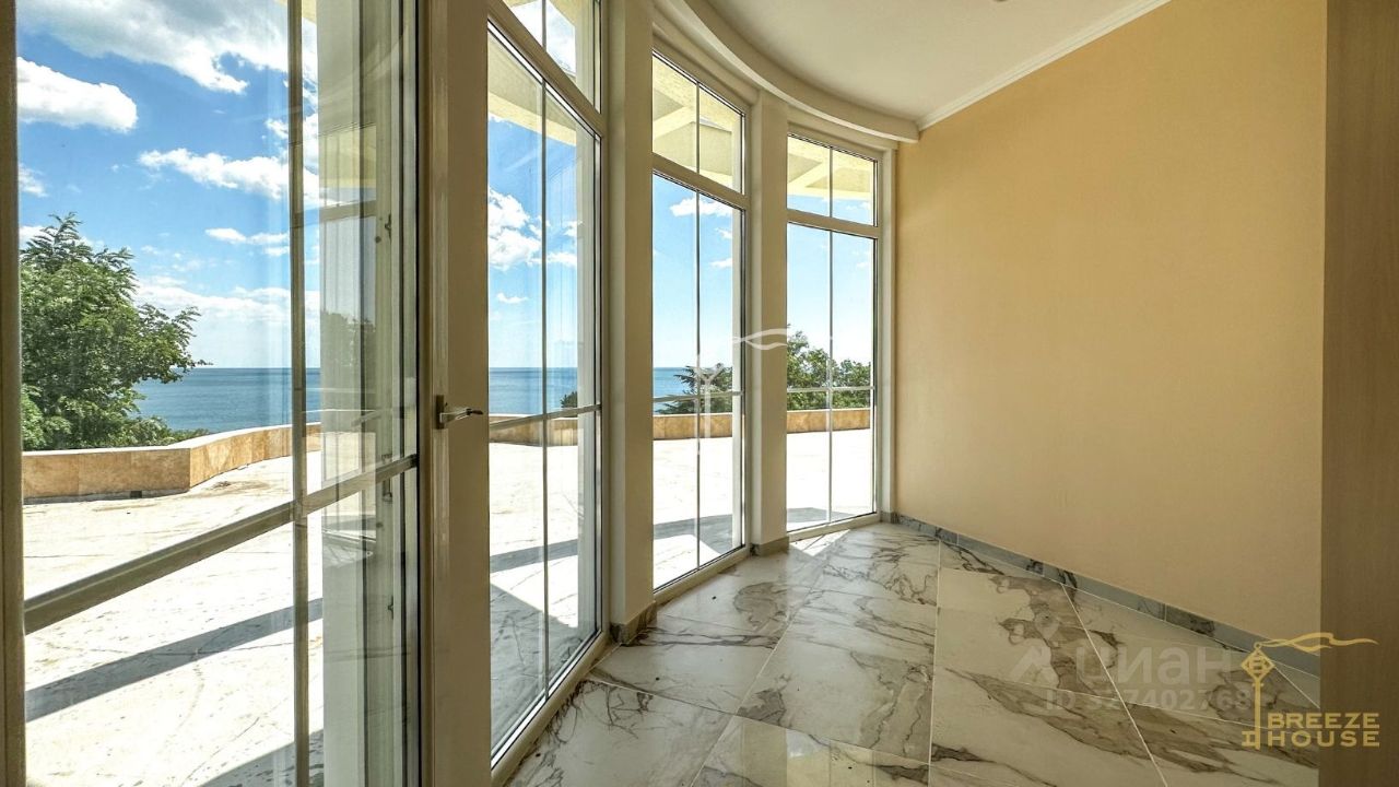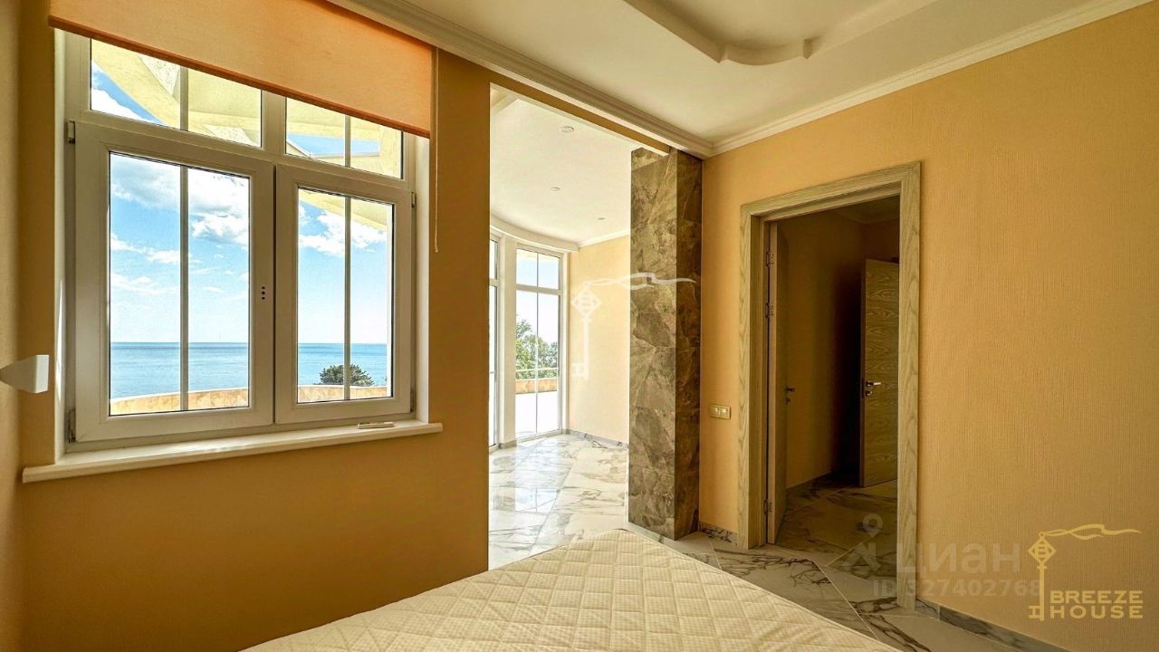Четырёхэтажная резиденция общей площадью 680 м² расположена на участке 8 соток ИЖС в прибрежной части Алупки, всего в 50 метрах от моря с шикарными видами на Чёрное море и силуэт горы Ай-Петри.