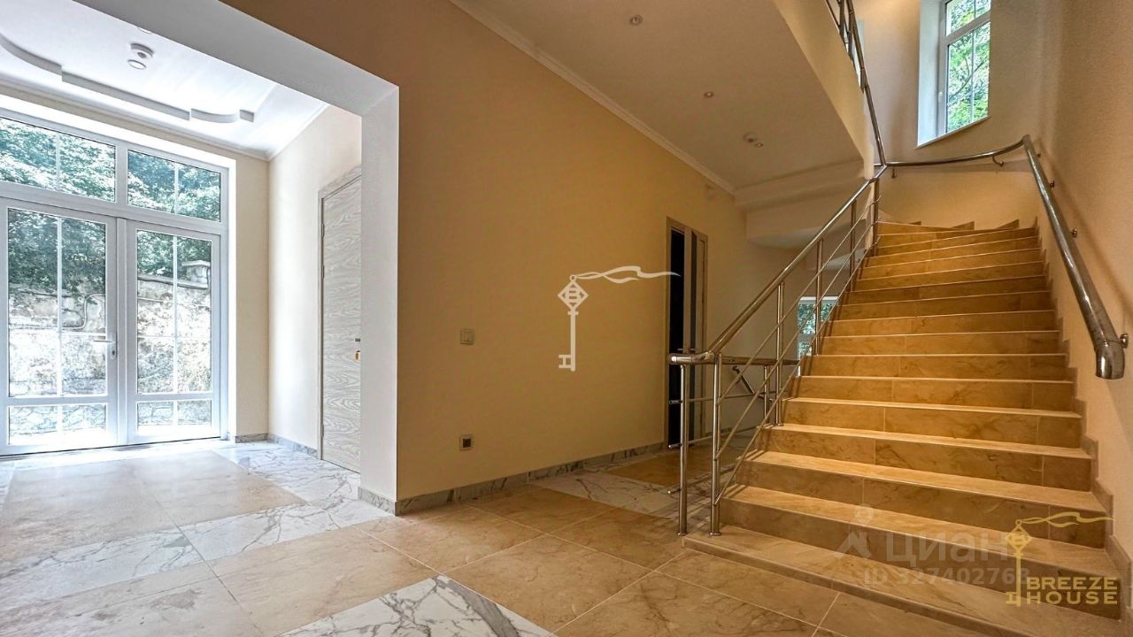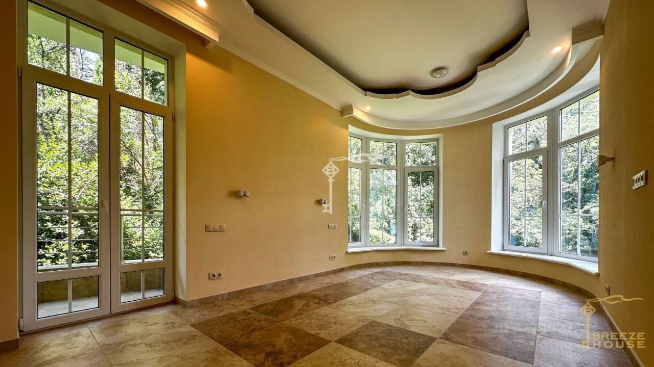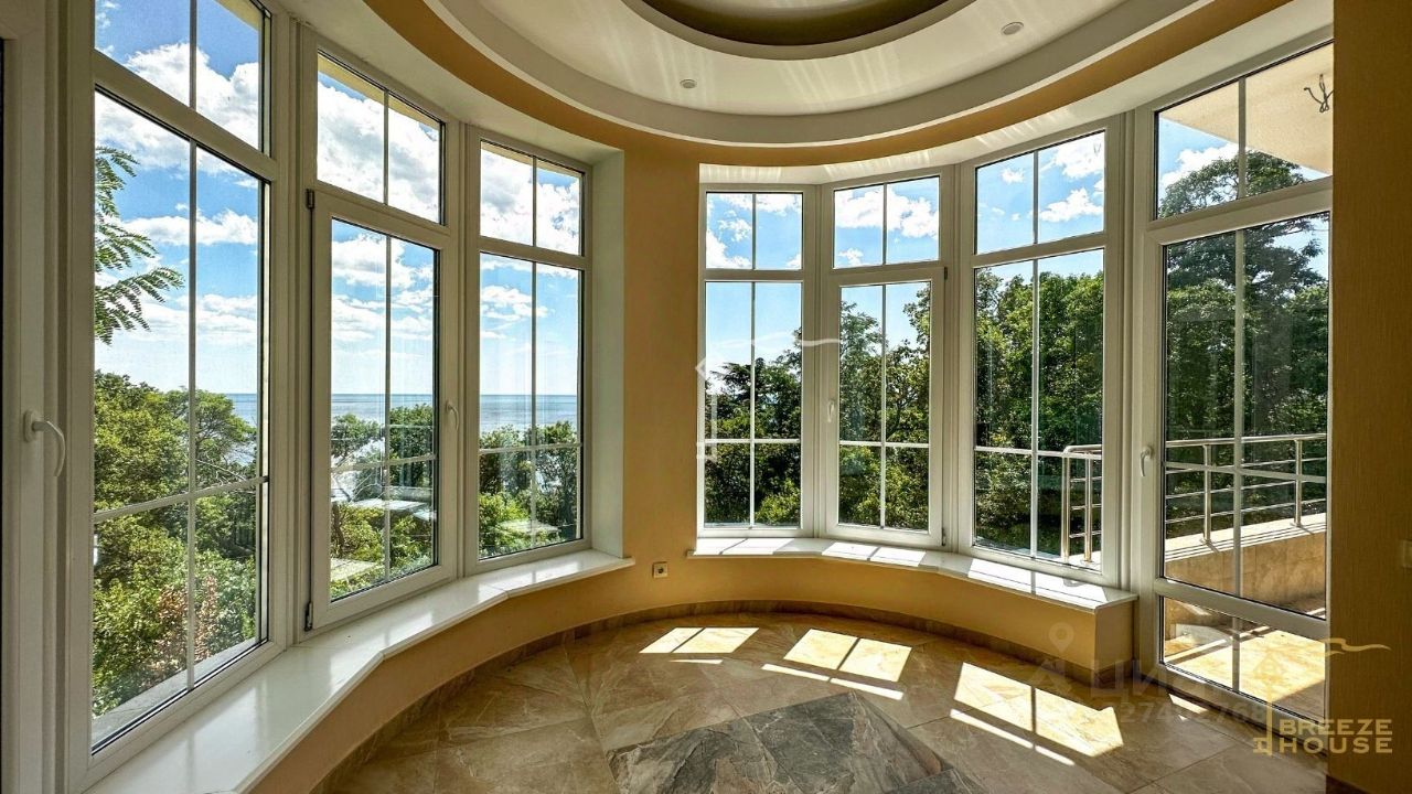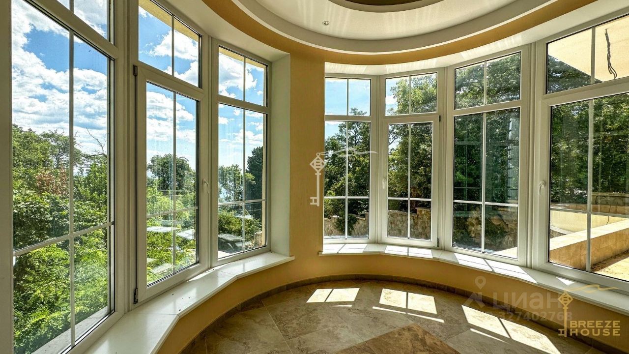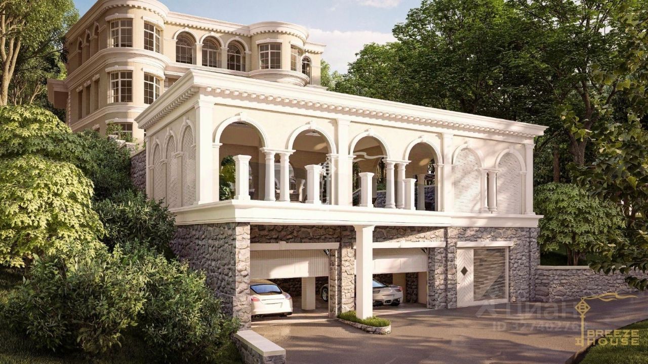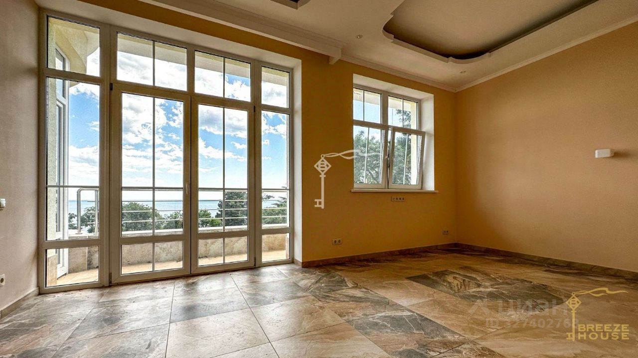 Четырёхэтажная резиденция общей площадью 680 м² расположена на участке 8 соток ИЖС в прибрежной части Алупки, всего в 50 метрах от моря с шикарными видами на Чёрное море и силуэт горы Ай-Петри.