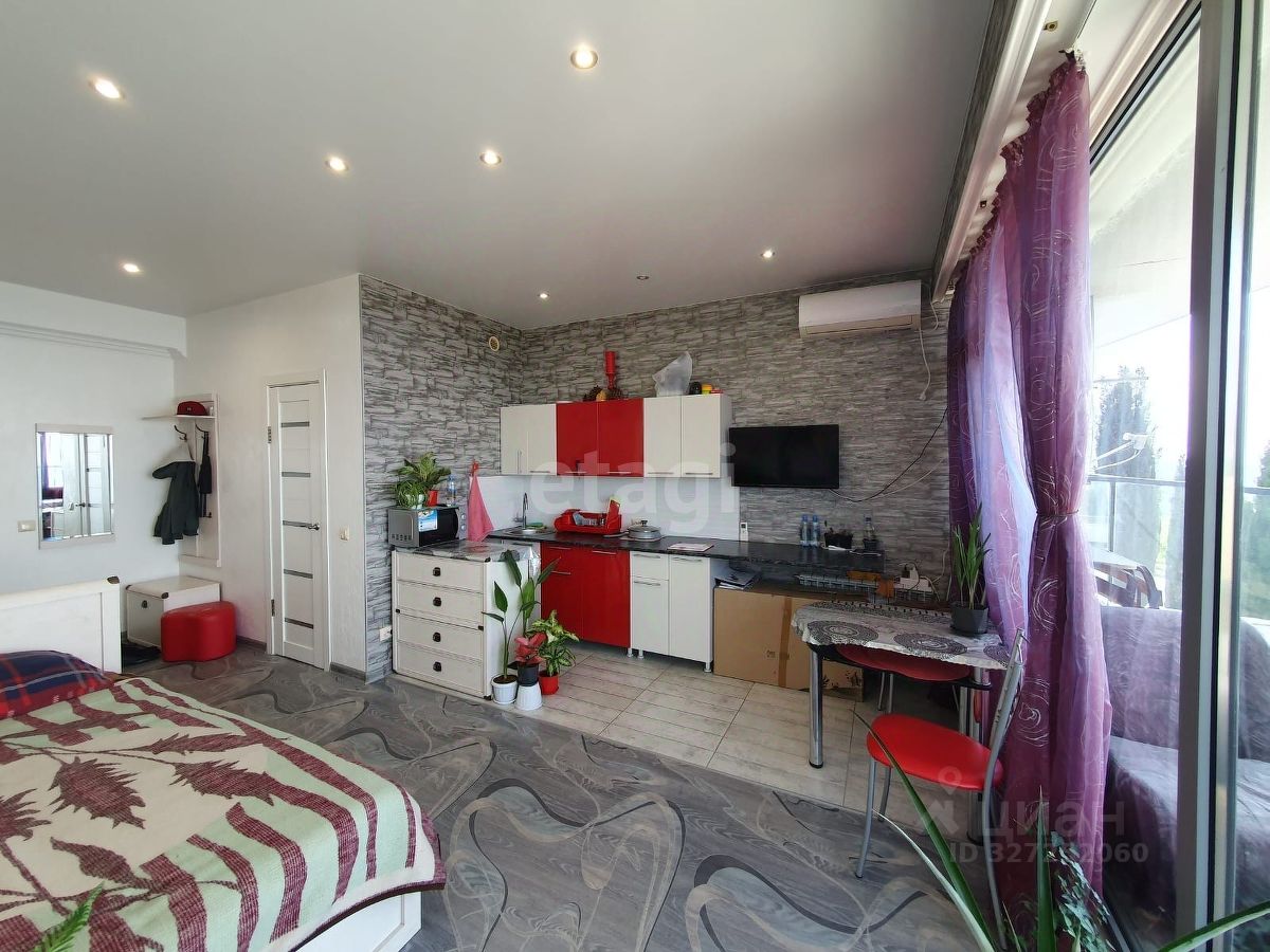 Продается студия общей площадью 31,6 екв. м на четвертом этаже современного шестиэтажного дома.В квартире выполнен современный ремонт. Остеклена энергосберегающими алюминиевыми оконными системами. Благодаря панорамному остеклению в квартире всегда много света и воздуха. Из окон, а также с южного открытого балкона квартиры открывается прекрасный панорамный вид на море и зелень Мисхорского парка. В квартире сделан хороший свежий ремонт: новая мебель, качественная современная сантехника. В квартире установлен современный электробойлер, вместительная стиральная машина, небольшой холодильник, кондиционер. По всей квартире смонтирован электрический теплый пол. Всего в 300 м от дома начинается территория Мисхорского парка, площадью 20 Га. Прогулка к пляжу через парк займет не более 20 мин. Дорога до центра Ялты и Набережной займет 15 мин на машине (12 км), до знаменитого Воронцовского дворца 2,5 км. Статус объекта ''Квартира'', возможна прописка. Коммунальные платежи по счетчикам в соответствии с общегородскими квартирными тарифами. В доме эксплуатируемая крыша, около дома видовая беседка с мангальной зоной. Документы готовы к сделке. Квартира продается с мебелью и быт техникой.
