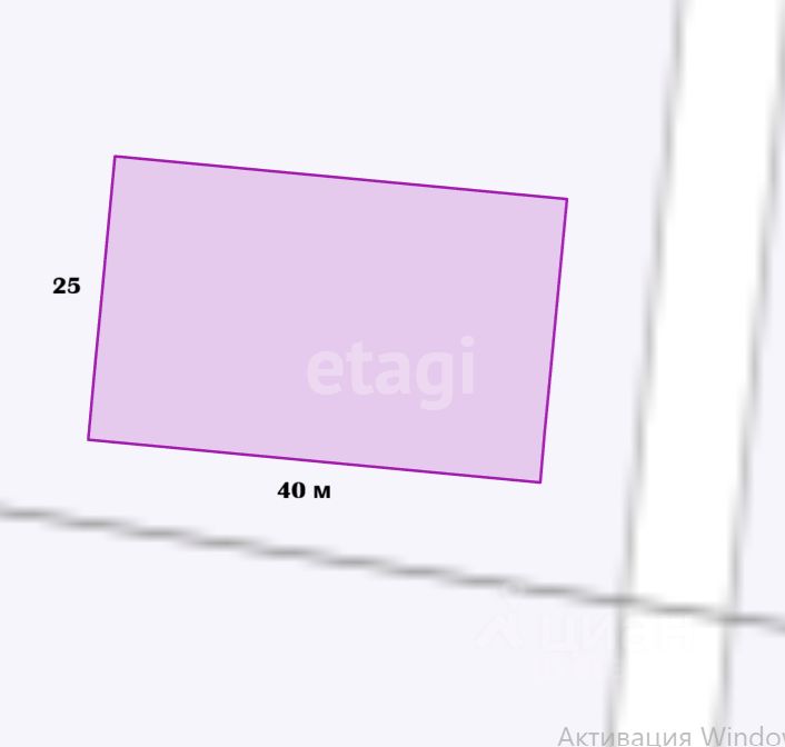 Участок имеет правильную прямоугольную форму 25 на 40 метров и ровный рельеф, что упрощает планировку и будущее строительство.