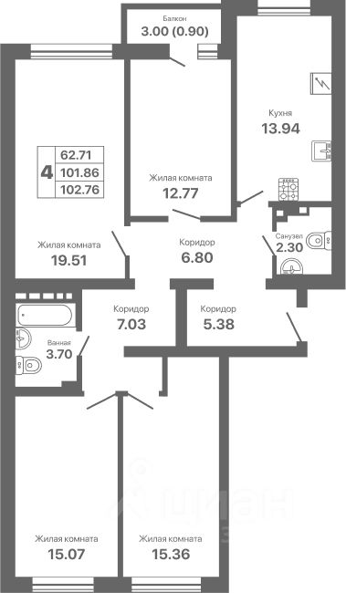 Общая площадь102,76 м2
