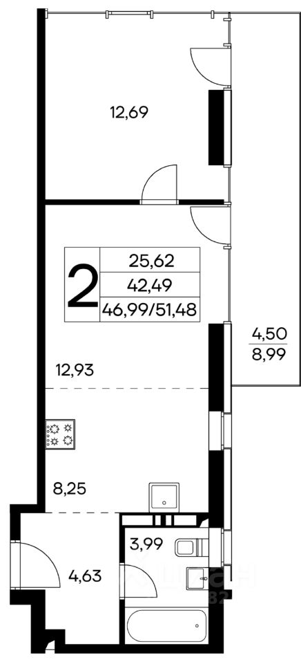 Общая площадь51,48 м2