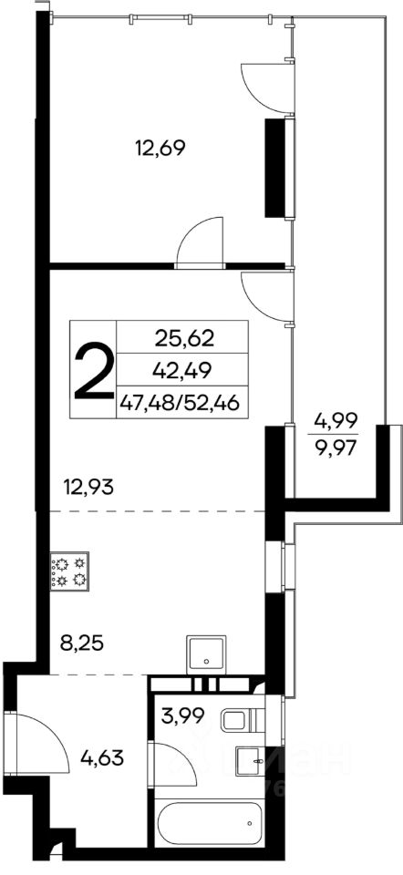 Общая площадь52,46 м2