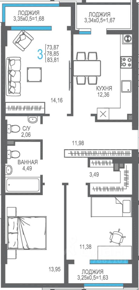 Общая площадь78,85 м2