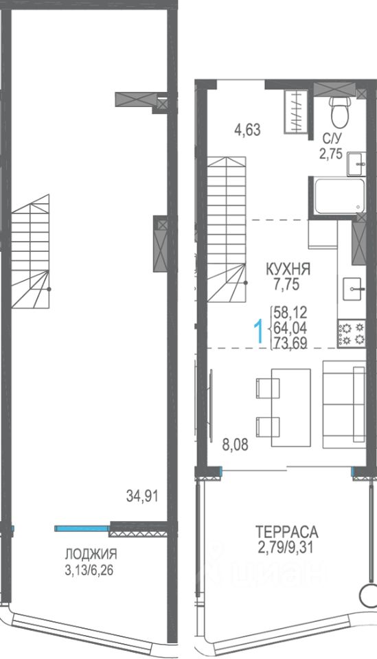 Общая площадь73,69 м2
