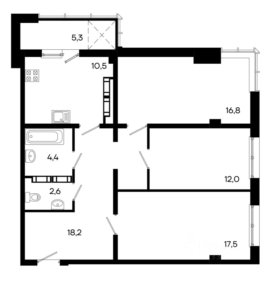продам 3-к, Севастопольская, 4116 150 500 ₽
