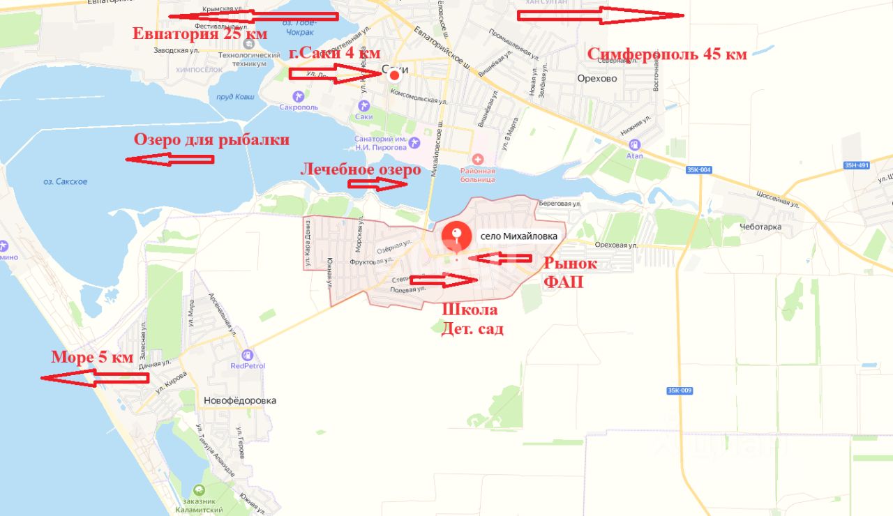 Полная инженерная готовность: по границе уже подведены магистральные сети электричества, газа и центрального водоснабжения. Подъездная дорога с асфальтовым покрытием обеспечивает удобный доступ в любое время года. Рядом автобусная остановка, 50 км до Симферополя, 20 до Евпатории и 3,5 до моря. Маршрутный транспорт ходит каждые 15 минут