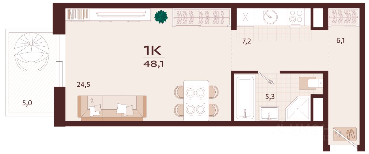 продам 1-к, имени Спендиарова, 525 197 000 ₽