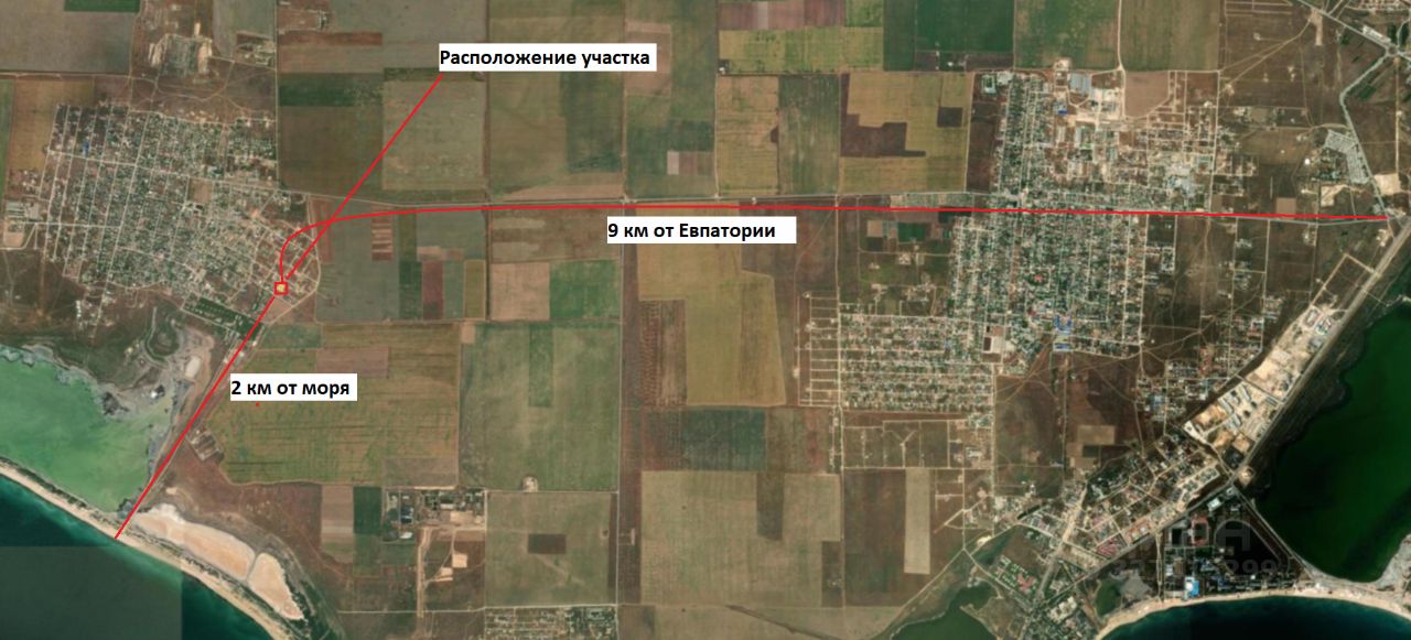 Участок ровный, 8,25 сотки, расположен в границах села Молочное. Активно застраивается. В 10 км от курортного города Евпатория. До моря ровно 2 км. Лучшие песчаные пляжи. Само село развито, есть своя школа, садик, магазины, аптеки, супермаркет, место для прогулок с детьми, общественный транспорт ходит регулярно.
