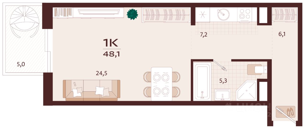 Продаётся 1-комнатная квартира в строящемся доме (Корпус 2), срок сдачи: II-кв. 2027, общей площадью 48.1 кв.м., на 7 этаже. Жилой комплекс бизнес-класса ''РОЯЛТА'' от застройщика ''ГК ТОЧНО'' в городе Ялта Республики Крым на улице Спендиарова.