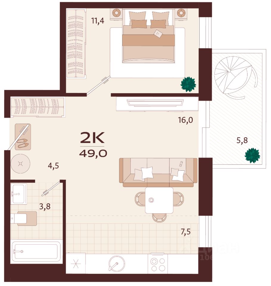 Продаётся 2-комнатная квартира в строящемся доме (Корпус 2), срок сдачи: II-кв. 2027, общей площадью 49 кв.м., на 9 этаже. Жилой комплекс бизнес-класса ''РОЯЛТА'' от застройщика ''ГК ТОЧНО'' в городе Ялта Республики Крым на улице Спендиарова.