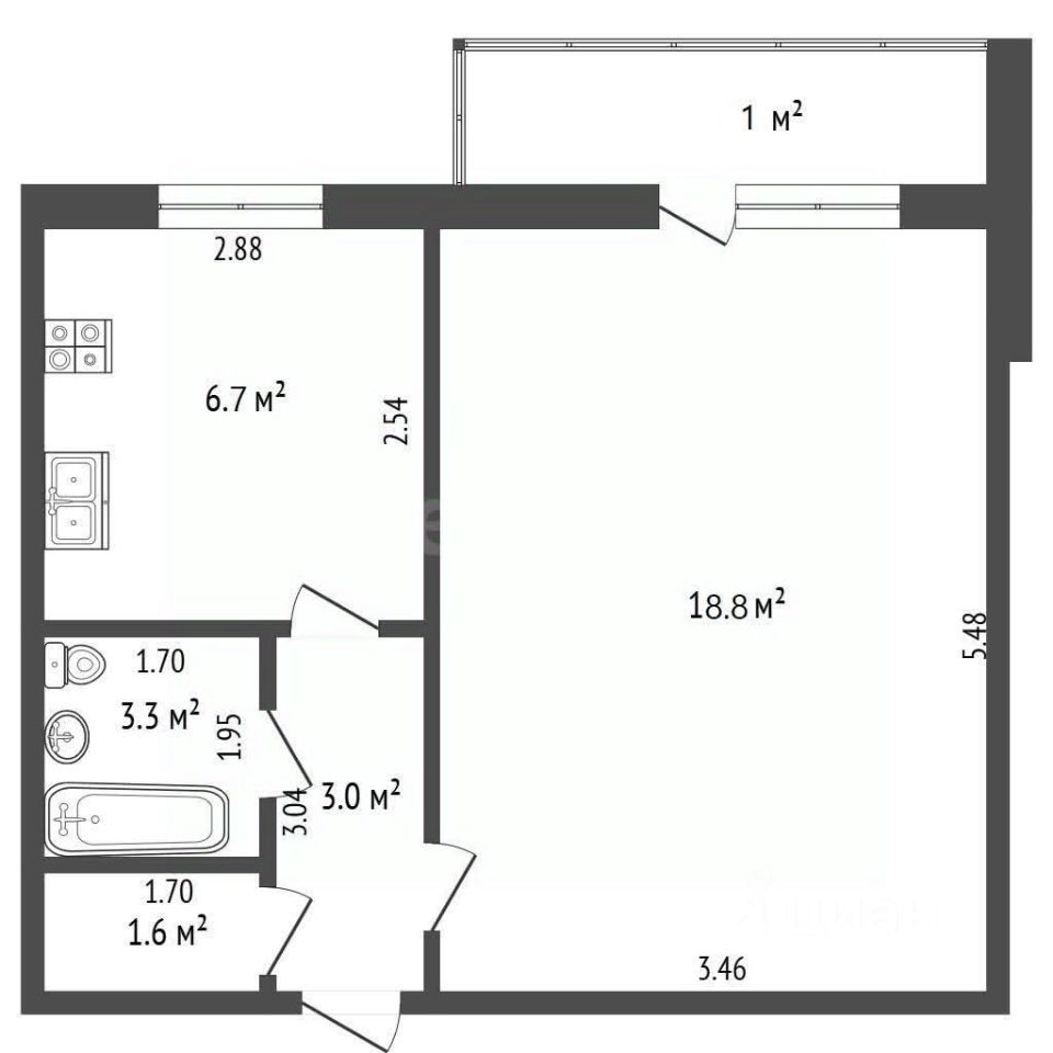 Квартира общей площадью 33,2 м² (жилая — 18,8 м², кухня — 6,7 м²) расположена на первом этаже пятиэтажного дома. Окна выходят во двор, есть балкон. Санузел совмещённый. Квартира требует косметического ремонта — отличная возможность создать интерьер по своему вкусу и вложить средства с максимальной выгодой. В квартире остается вся мебель, кухня с газовой плитой, бойлер(работают исправно). Кондиционера нет.
