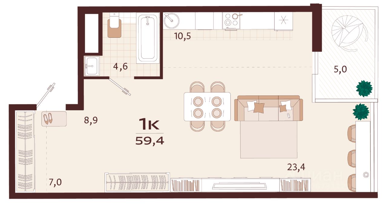 продам 1-к, имени Спендиарова, 532 209 000 ₽