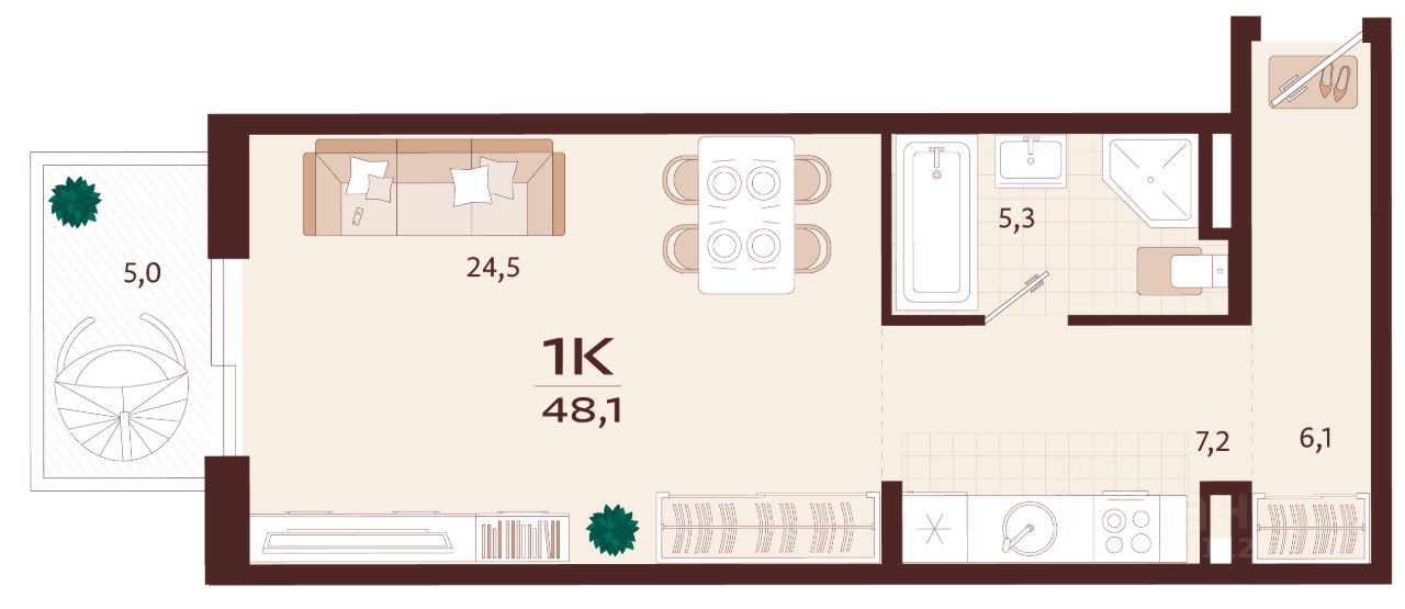 Продаётся 1-комнатная квартира в строящемся доме (Корпус 2), срок сдачи: II-кв. 2027, общей площадью 48.1 кв.м., на 7 этаже. Жилой комплекс бизнес-класса ''РОЯЛТА'' от застройщика ''ГК ТОЧНО'' в городе Ялта Республики Крым на улице Спендиарова.
