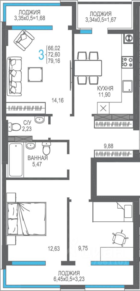 Продаётся 3-комнатная квартира в строящемся доме (Корпус 8), срок сдачи: I-кв. 2026, общей площадью 72.6 кв.м., на 8 этаже. Жилой комплекс ''На Фонтанке'' в городе Алушта на улице Багликова.