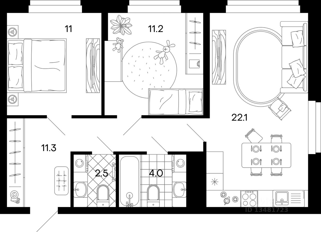 Общая площадь62,1 м2