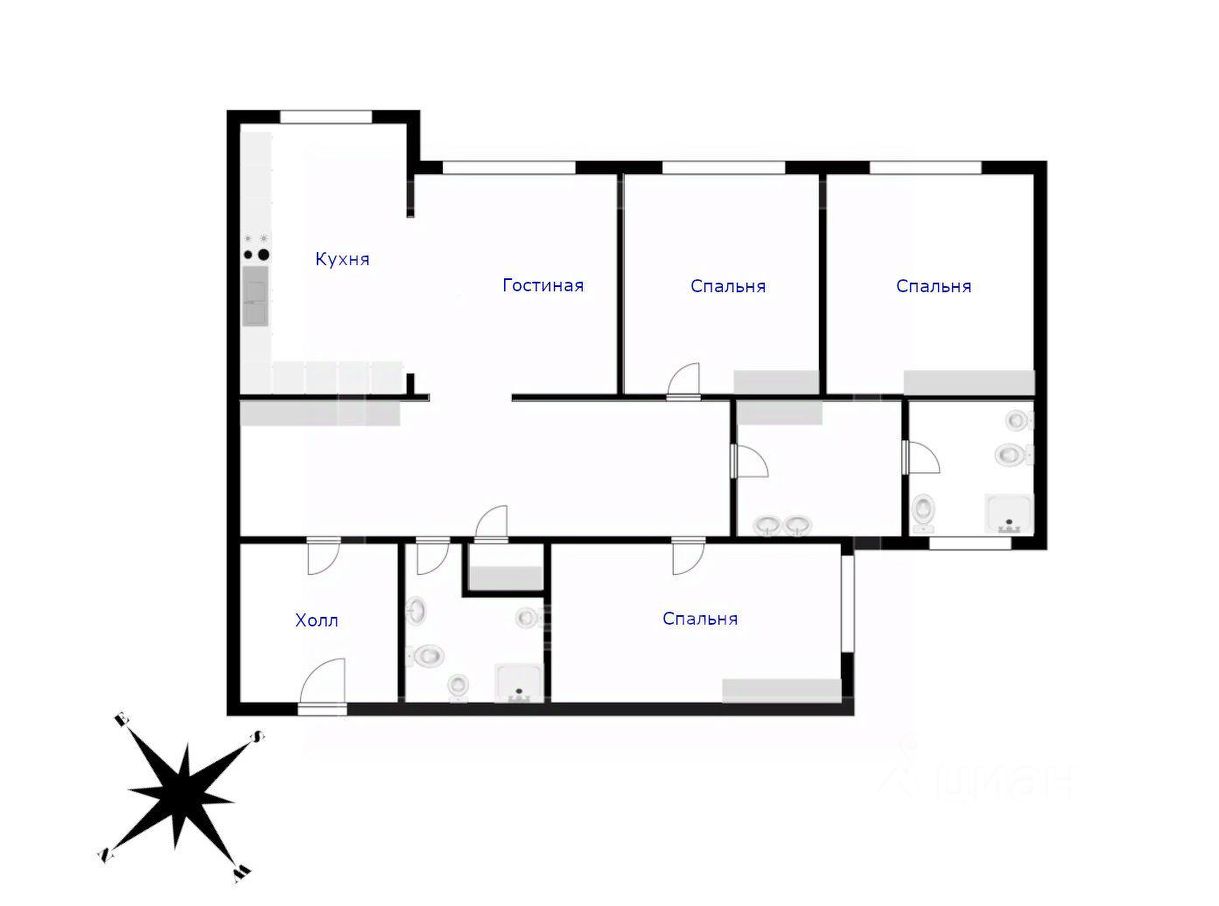 ID 27353. Бонус профессиональным агентствам и частным брокерам! Предлагается просторная 4-комнатная квартира в элитном жилом комплексе ''Триумф-Палас'' без мебели. Общая площадь: 200 кв. м. Планировка: гостиная, кухня, 3 спальни, 2 ванные комнаты. Окна во двор. Современный ремонт, кондиционирование, бойлер, обогрев полов, интернет и телевидение. Кухня и ванные комнаты оснащены всем необходимым оборудованием. Машино-место в подземном паркинге входит в стоимость. Возможна парковка во дворе дома. Высокоразвитая инфраструктура в комплексе. Метро Аэропорт и Сокол в пешей доступности, рядом замечательный Чапаевский сквер.